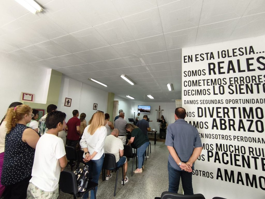 Reuniones semanales Domingos 11:00 hrs Reunión de oración* Jueves 19:00 hrs Enviar petición de oración Reunión y estudio bíblico de hombres y mujeres* Cada miércoles 19:00h. Quiero participar